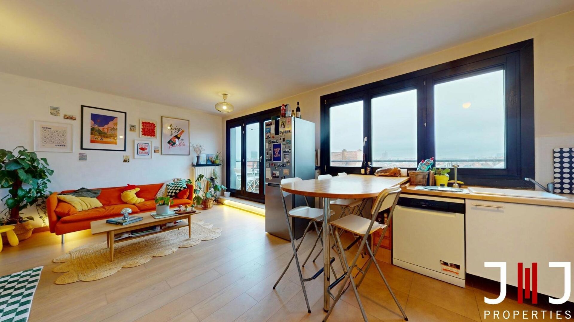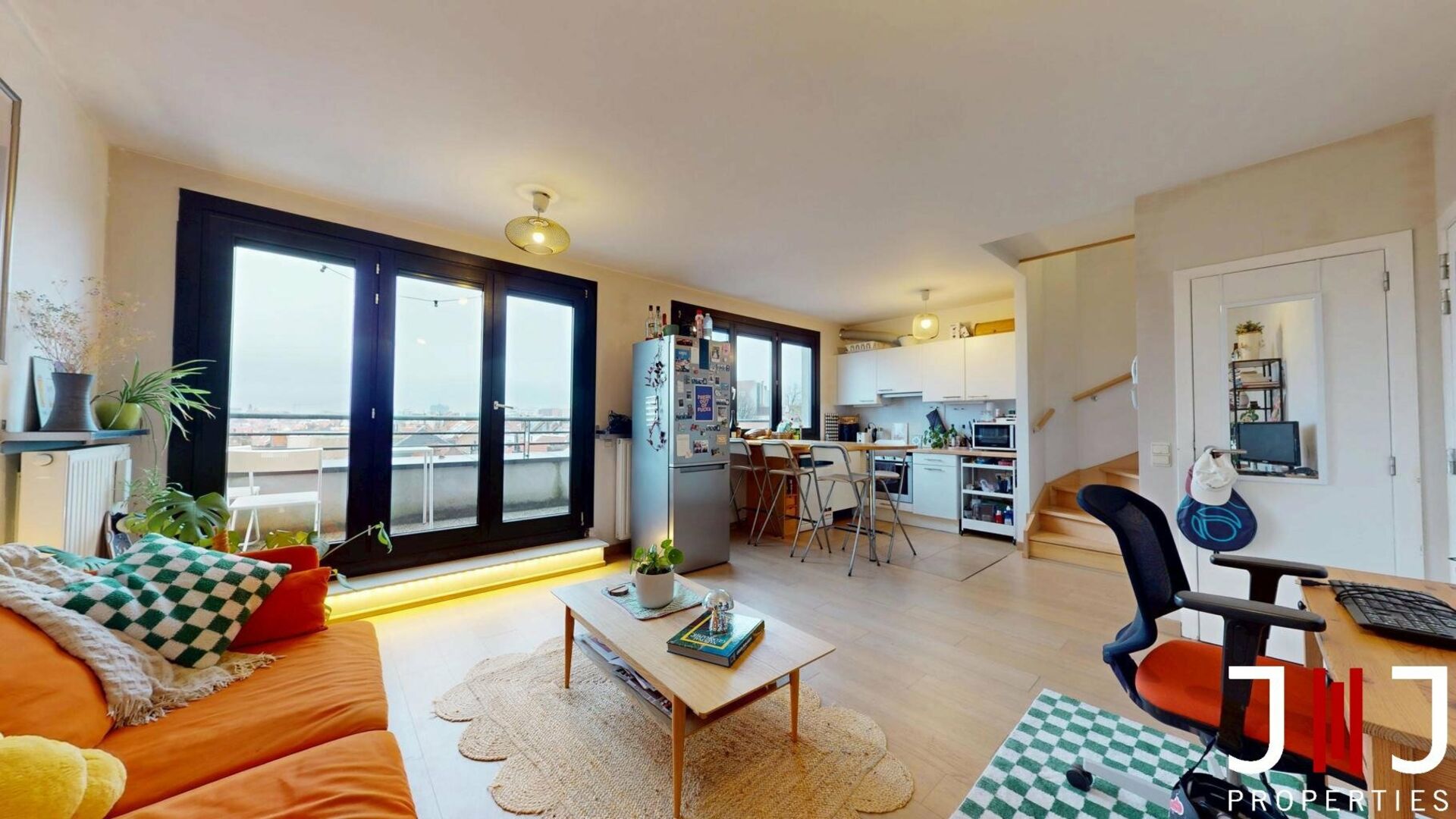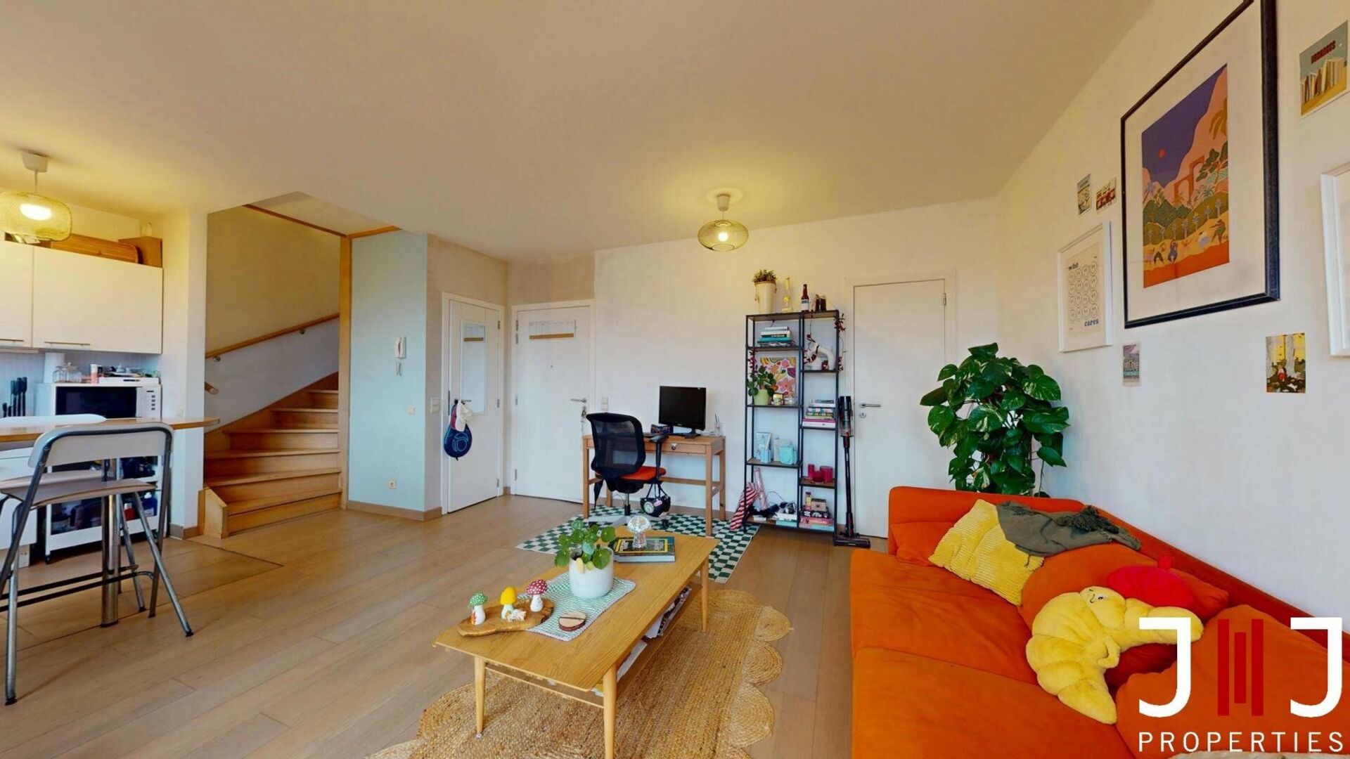 IXELLES – 1-bedroom duplex with terrace & parking Located on Avenue Auguste Rodin 20, between the Étangs d’Ixelles and Avenue de la Couronne, in a lively and sought-after neighborhood close to public transport (bus, tram, Etterbeek station), shops, restaurants, green areas and the ULB/VUB campuses, this bright 1-bedroom duplex is situated on the top floor of a recent 2003 residence and offers a pleasant and privileged living environment. Developing a PEB surface of 66 m², the apartment consists of a bright living room with large windows opening onto a ±10 m² terrace offering an unobstructed view with no overlook. An open fully-equipped kitchen and two built-in storage units complete this level. Upstairs, the night area includes a spacious ±20 m² bedroom, a bathroom with bathtub and laundry area, as well as a separate toilet. Technical & practical features: individual gas heating (Vaillant), double glazing, lift, compliant electricity, EPC D. Monthly charges amount to €110 and include maintenance of the common areas, building insurance and property management fees. All meters are individual. A private cellar and an underground parking space complete the property (mandatory extra €30,000). This property is ideal for a first purchase (single person or couple) or as an investment with excellent rental potential in a highly sought-after area. A must-see!Ref. 7288516