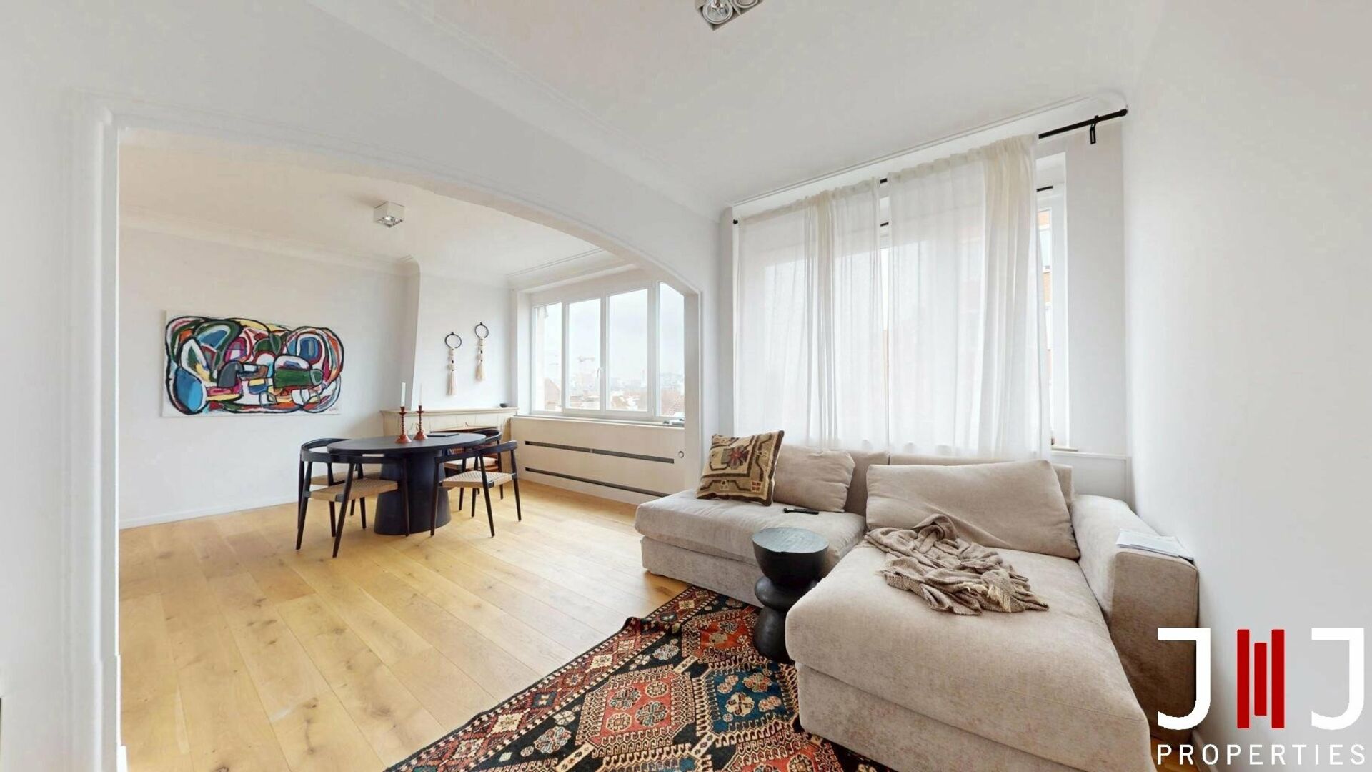 Etterbeek – Pétillon Area – Ideally Located Apartment Ideally situated close to public transport, shops, major roads, and the EU institutions, J&J Properties presents this lovely apartment offering optimal comfort. This fully renovated apartment, located on the 5th floor with an elevator and offering a surface area of 85 m² (PEB value), is composed as follows: an inviting entrance hall, a bright living room with dining area, a fully equipped kitchen, two comfortable bedrooms, a modern bathroom, a laundry area, and a separate toilet. The apartment also features a pleasant terrace, perfect for enjoying sunny days. Technical details: The energy certificate was issued before the replacement of the window frames; since the works, the estimated energy performance is level E. Compliant electricity, gas heating, PVC double-glazed windows (2025). Charges: €250 per month including communal charges and heating.An optional garage is available for €150, and a cellar is also included. Its ideal location, brightness, and high level of comfort make this apartment a must-visit! REF J&J: 7201992