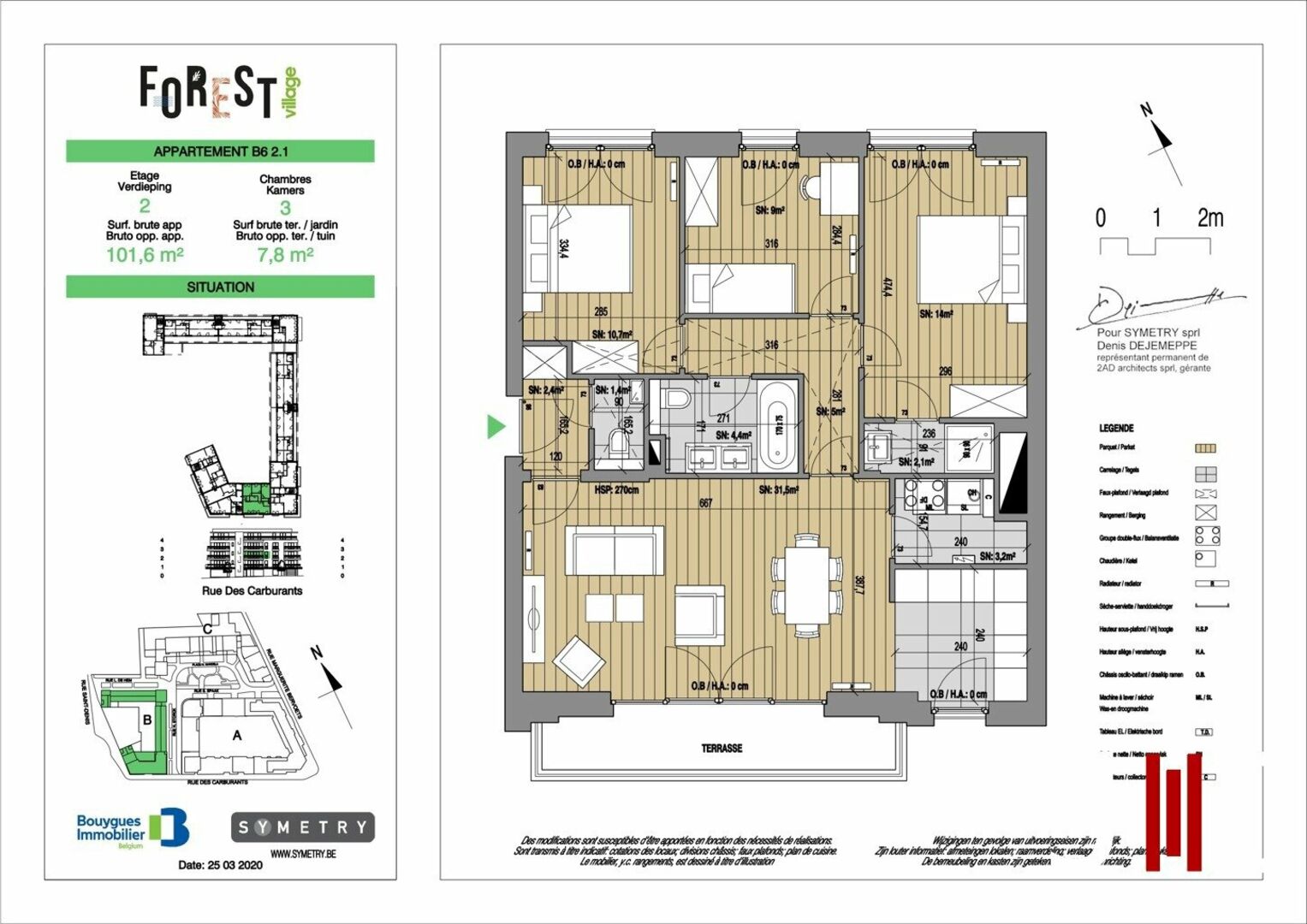 Located in the heart of the recently built Forest Village residence (2023), J&J Properties is pleased to present this beautiful 3-bedrooms apartment in excellent condition. It enjoys an ideal location, close to all amenities: shops, schools, public transport (tram & bus), the town hall, and Forest National. Situated on the 2nd floor with elevator, the apartment consists of: an entrance hall with separate WC, a bright living room with access to the terrace, a fully equipped kitchen, a laundry area, and three spacious bedrooms (14, 10, and 9 m²), with the largest bedroom featuring its own en-suite shower room. The other two bedrooms share a bathroom with double sink, bathtub, and WC. A cellar and a mandatory parking space (+ 25.000€) complete the property. Apartment available immediately upon signing. Technical details: PEB B, compliant electricity, individual meters for water, gas, and electricity. A must-see property!Ref. 7257924