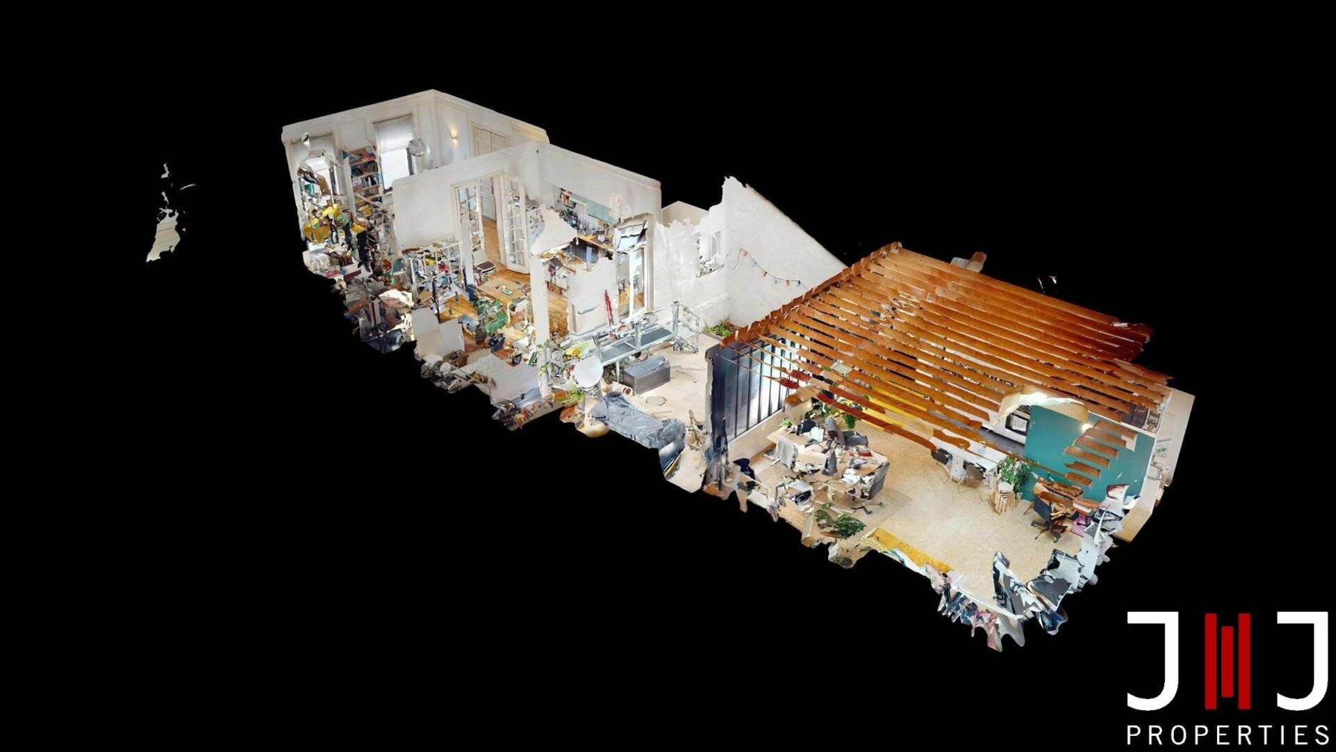 Développant une superficie totale d’environ 165 m², le bien se compose, au rez-de-chaussée, d’un séjour et d’une salle à manger en enfilade avec cuisine équipée, ouvrant sur une agréable cour privative orientée sud-est de 36 m². Cet espace extérieur dessert également un atelier indépendant de ±50 m², accessible aussi depuis la rue via une servitude, offrant de multiples possibilités d’aménagement : bureau, profession libérale, espace polyvalent ou revenu locatif supplémentaire.
