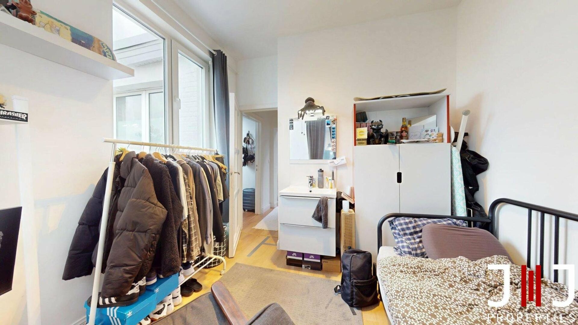 Rez-de-chaussée : une unité de 143 m² (valeur PEB) comprenant deux chambres, une cuisine, un WC séparé, un espace commercial à l’avant, ainsi qu’un sous-sol aménagé donnant accès à une cour extérieure. Nombreuses possibilités pour cette unité.