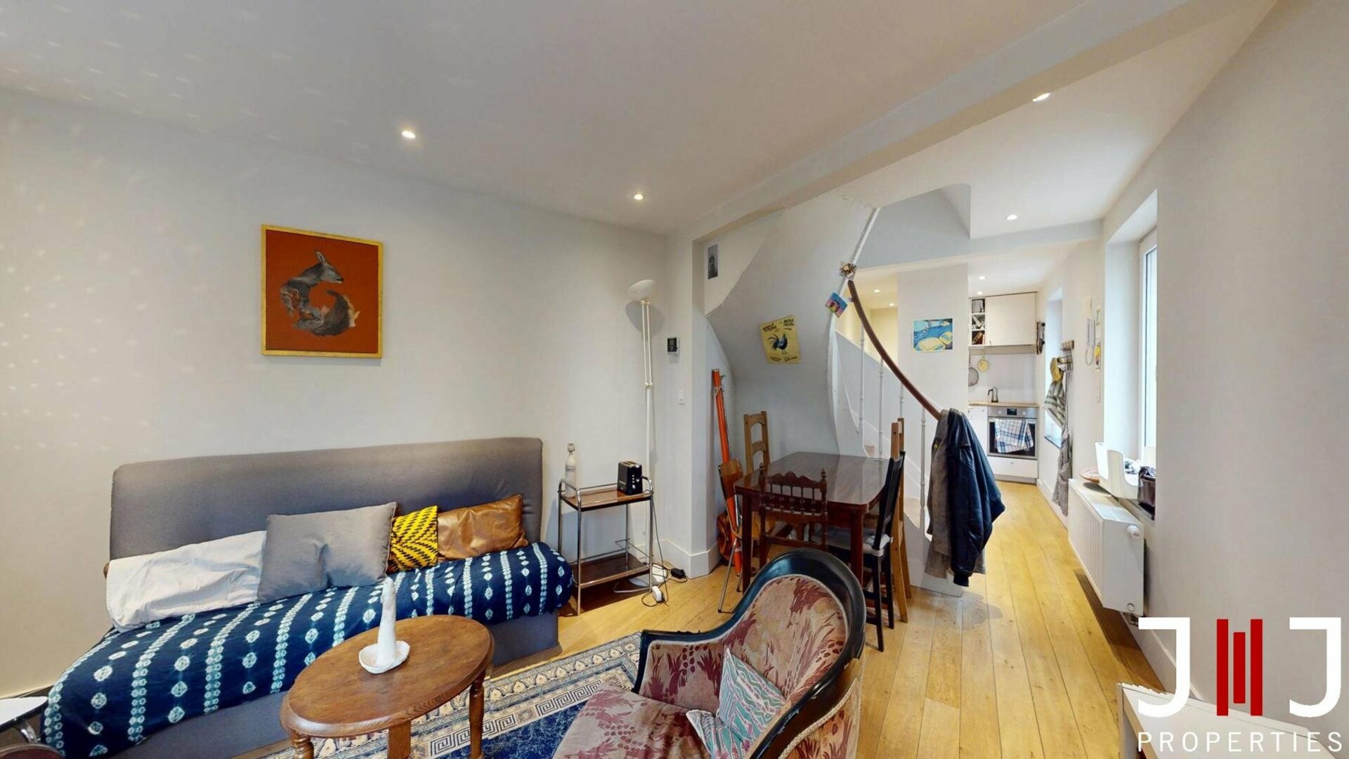Een ruime triplex van 154 m² van de 1e tot de 4e verdieping, bestaande uit 3 slaapkamers en 3 badkamers, eveneens met een privatieve ingang